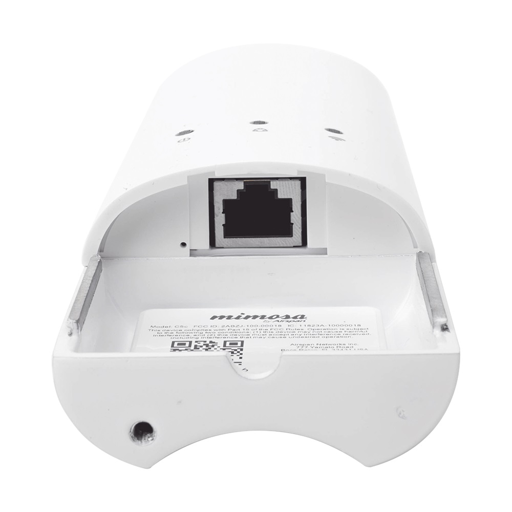 El radio Mimosa C5c ha sido diseñado especialmente para hacer enlaces de backhaul de larga distancia (PTP) o usarse como Cliente en enlaces Punto a Multipunto (PTMP) con un A5c, A514 y A5x.